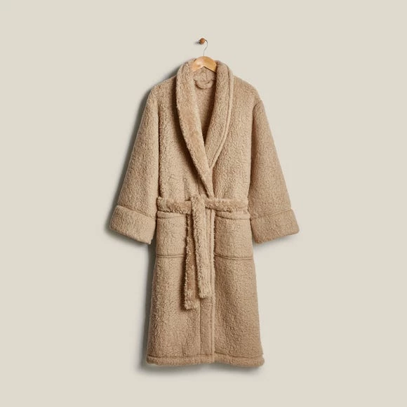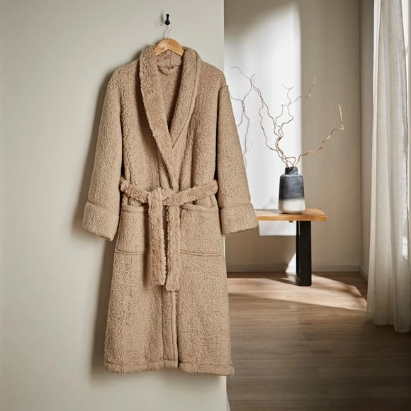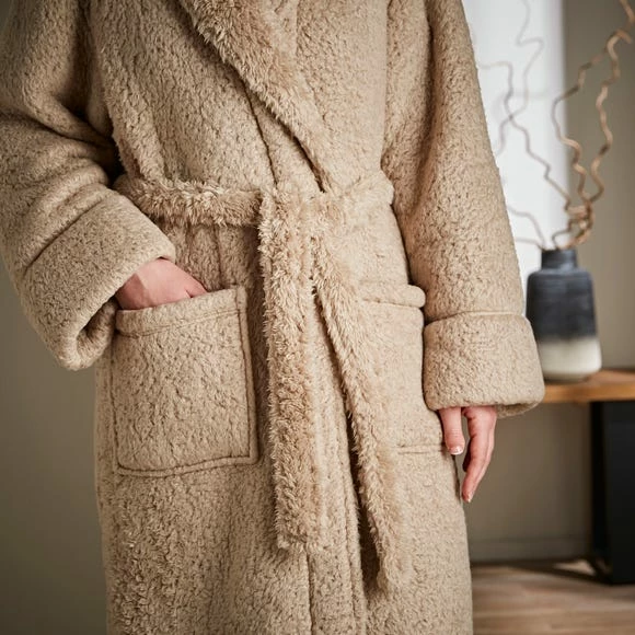 Perfect as a gift this cosy and warm dressing gown has been beautifully crafted with a super soft teddy fabric and complete with a shaggy texture for added comfort. The gown features two deep pockets and fastens with a self-tie belt. This dressing gown is available in a range of sizes and colours. Matching slippers are also available.